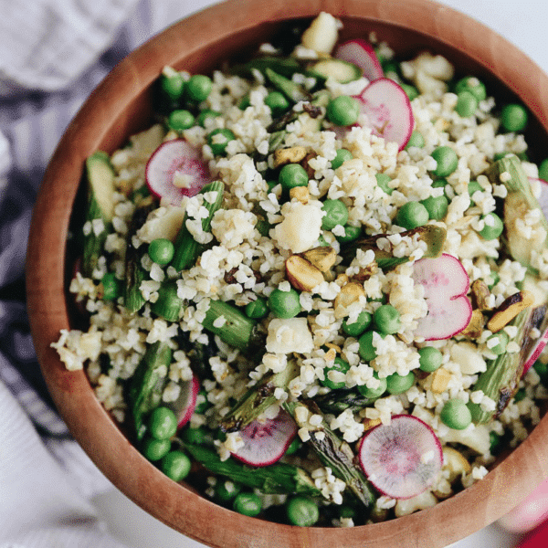 Spring Bulgur Wheat Salad with Avocado Herb Dressing