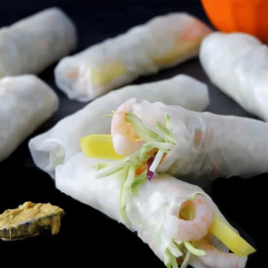 Shrimp & Mango Rolls with Spicy Peanut Sauce