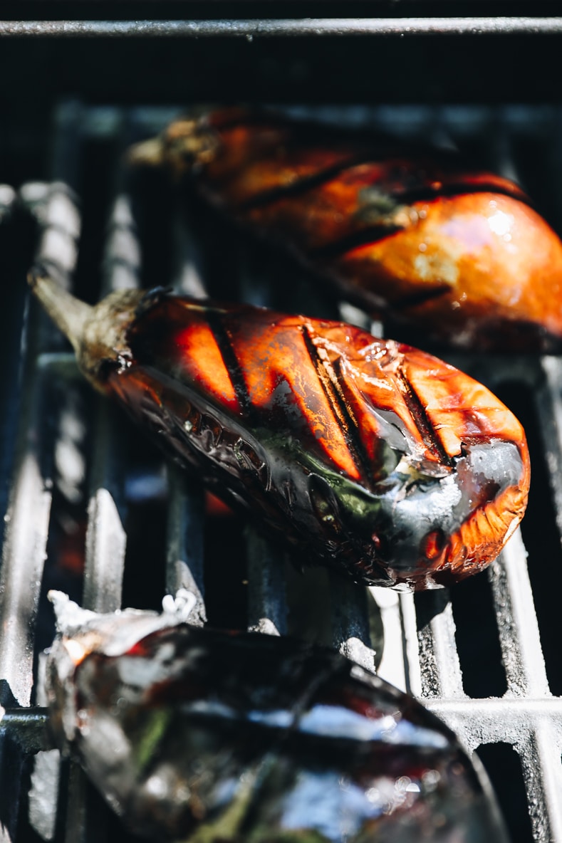 The most important piece to making baba ganoush is smoking the eggplant. It’s pretty easy to smoke it if you have a grill. I also prefer to smoke the garlic. I find raw garlic can be difficult to digest so smoking it makes it easier!