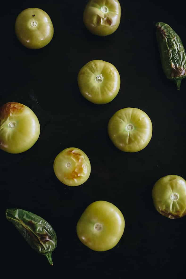- Tomatillos – Not to be confused with green tomatoes which are actually a different species of plant entirely! Most grocery stores carry tomatillos but if you’re having trouble finding them, most Mexican or South American grocery stores have them. Reminder to remove the papery husks before roasting.