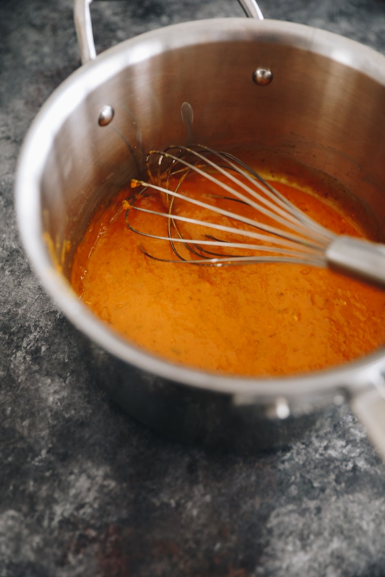 - Meanwhile, combine coconut milk, lime zest and juice, honey and Sriracha in a small pot over medium heat until it begins to simmer.