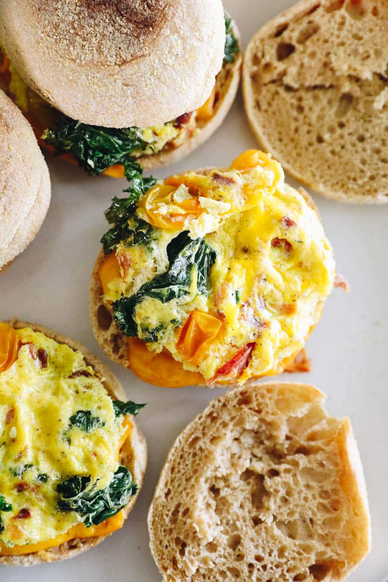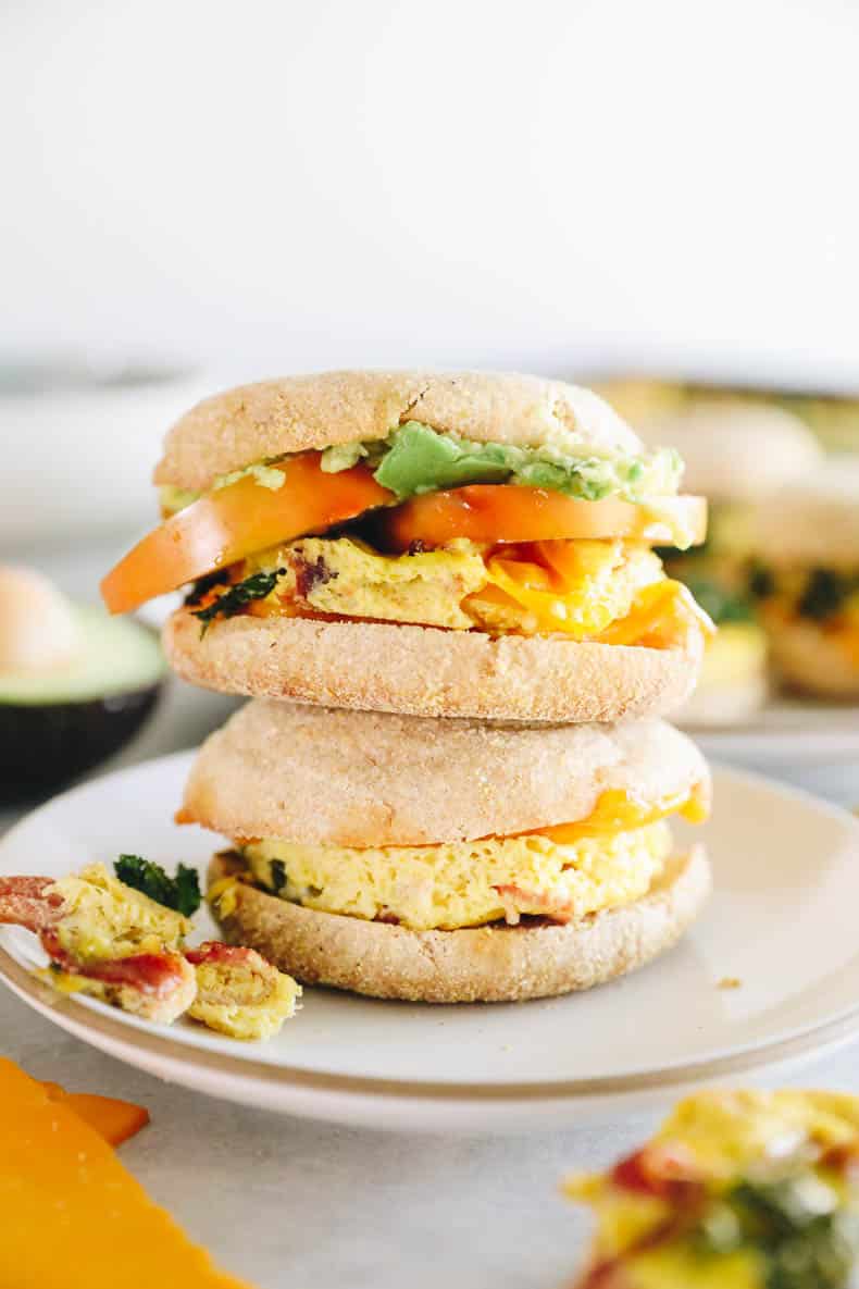 Hello make-ahead breakfast sandwiches! These protein-packed meal prep breakfast sandwiches make the perfect breakfast for life on the run. Easy to make in advance and store in the freezer for a healthy last-minute breakfast!