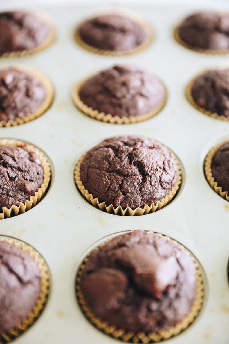 - Applesauce – since we’re only use 3 tbsp of butter I add applesauce to keep these chocolate zucchini muffins extra moist. It’s a great hack for any muffin recipe!