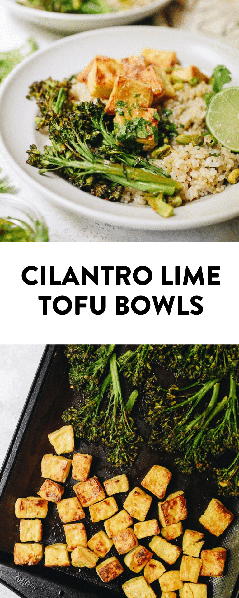 These cilantro lime tofu bowls make a great meal-prep meal. To store you can create 4 different glass Tupperware with rice and on the other side add the tofu and broccolini. Sprinkle with nuts or seeds. Keep the dressing in a glass jar in the fridge. Alternatively you can store the rice together and the veggies and tofu together.