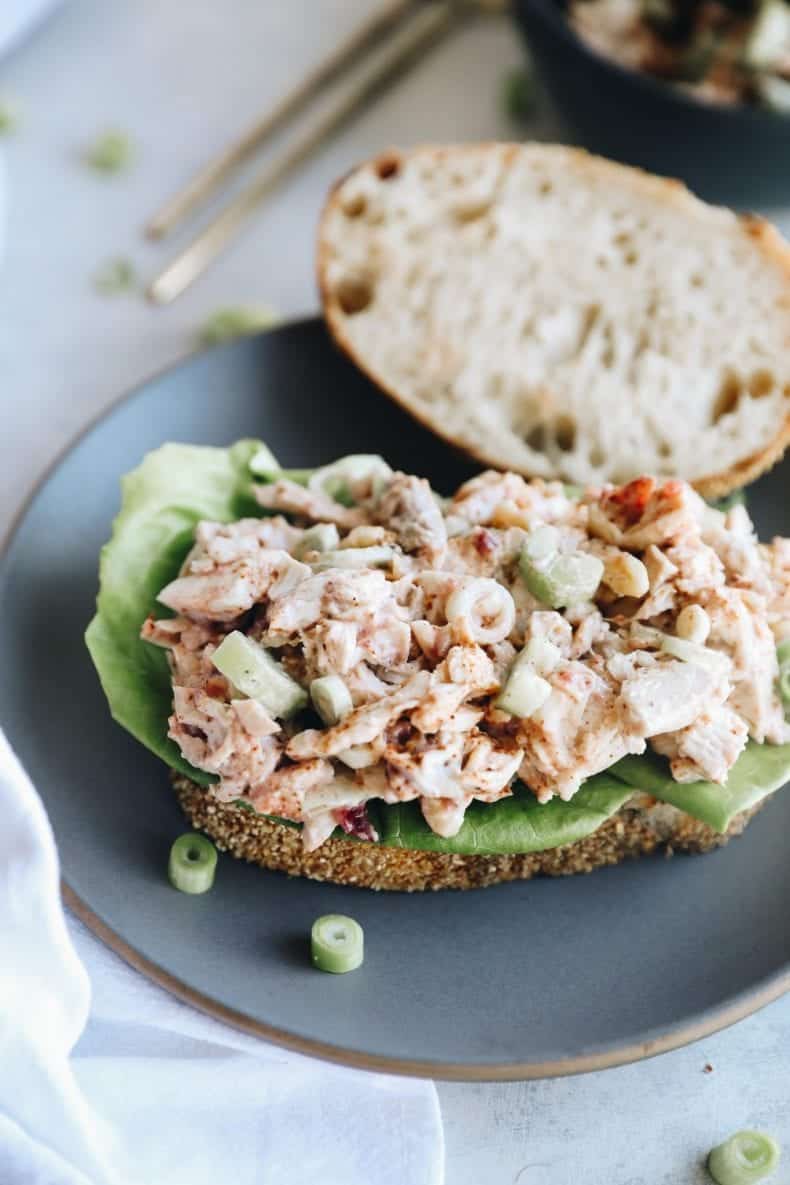 1. Sandwich – Just scoop about 1 cup of this turkey salad onto your favorite bread. Option to add lettuce or extra onion. Bonus points if you put it on a croissant – yum!