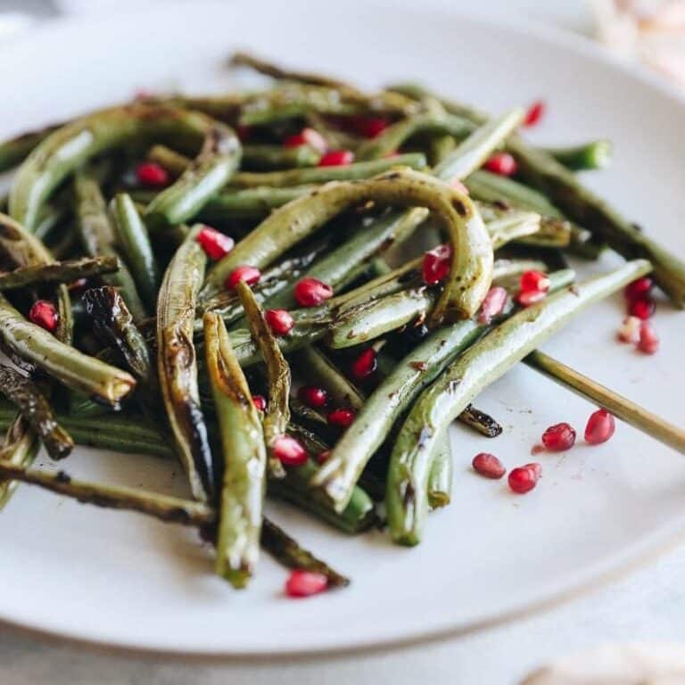 The roasted flavour of the green beans with the pop of sweetness from the pomegranates will make these charred green beans with garlic and pomegranate seeds your new favorite!Â