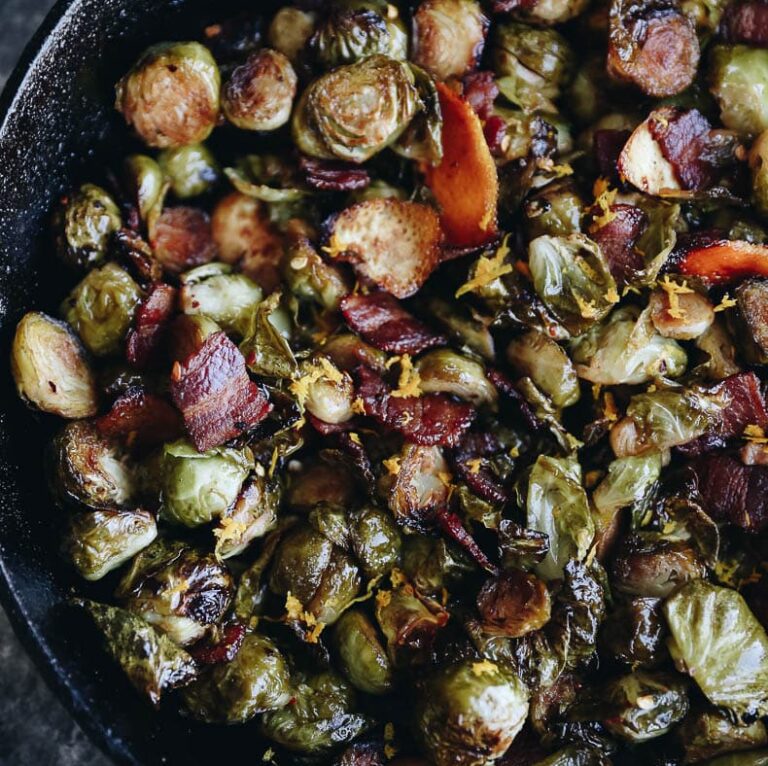 Enjoy these Maple Bacon Brussel Sprouts as a holiday side or winter weeknight dish. Packed full of flavor from fresh orange and smoky bacon, these bacon brussels sprouts can be easily made in the oven and will not disappoint.