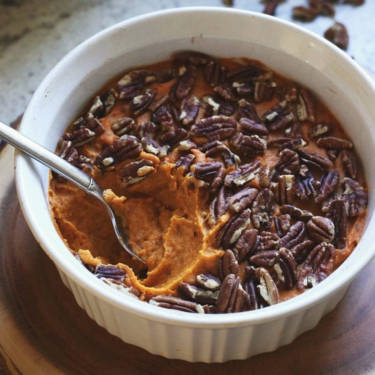 Orange Pecan Mashed Sweet Potato Casserole