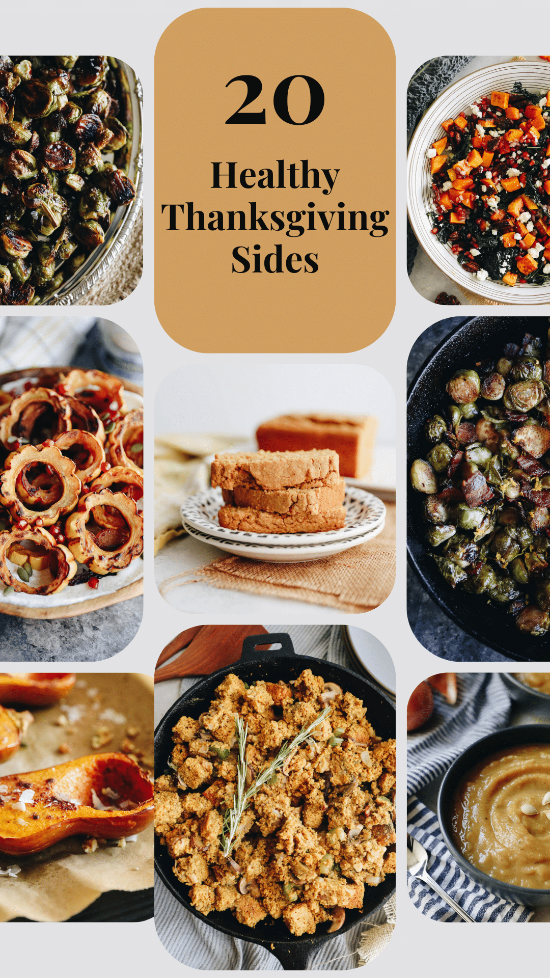 Thanksgiving is right around the corner. Enjoy your Thanksgiving dinner and the company of family and friends with these 20 Healthy Thanksgiving Sides including healthy cornbread, roasted vegetables, delicious salads and brussels sprouts galore!