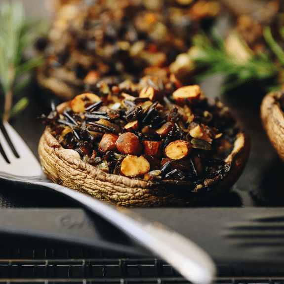 Wild Rice Stuffed Portobellos that are easy to make, gluten-free and vegan and full of nutrition for a delicious weeknight side dish recipe. Perfect for mushroom and non-mushroom lovers alike!