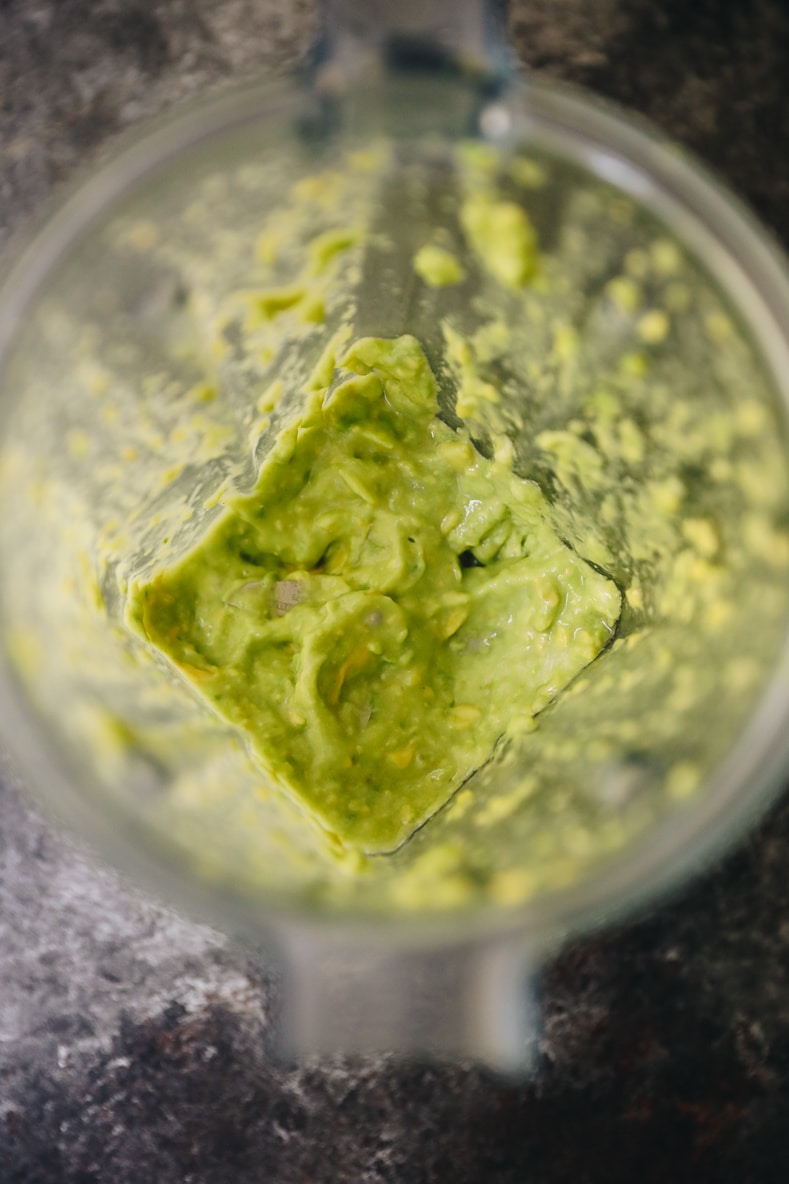 I truly love every ingredient in this dish but the avocado cream miiiight steal the show! Combine the avocado, lime juice, scallion, garlic, cumin and sea salt in a blender or food processor and process until well-combined. The end result should be a creamy consistency!