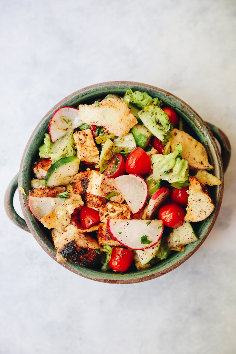 Every Spring I’m inspired to look for new simple delicious salad recipes! I love Fattoush salad but for some reason I’m always intimidated to make it. Your recipe was so easy to follow, had simple ingredients and tasted better than any takeout I’ve had. The grilled chicken was a huge hit with my family too. Thanks for some much for the recipe!