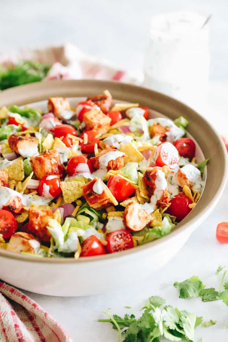Try a different dressing – You can use store-bought ranch if you prefer or try a different dressing like this cilantro lime dressing in place of bbq ranch dressing.