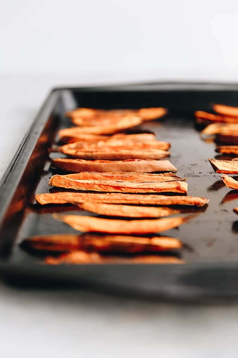 Here are our best tips for making crispy sweet potato fries in the oven: