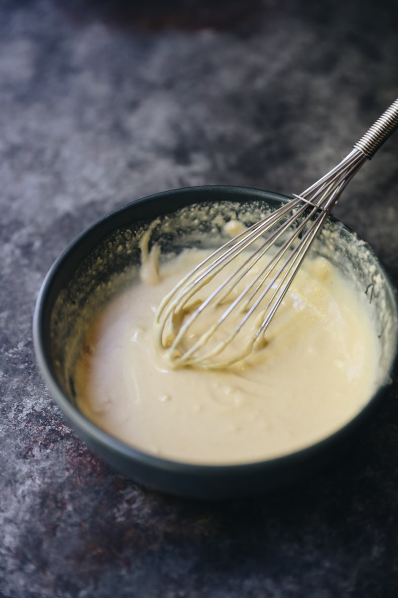 STEP 3: While the vegetables are roasting, mix together the tahini, lemon juice, garlic and water. Stir to combine completely. If the mixture is too thick, you can add more water.Â