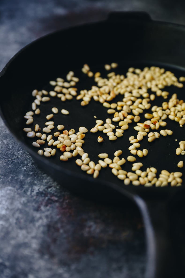 STEP 4: Toast pine nuts in a saucepan on the stove or in a toaster oven until slightly browned.