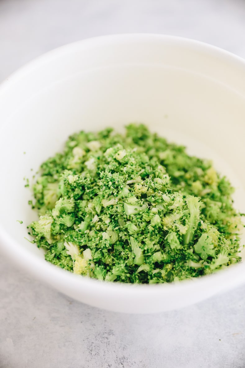 Chop up broccoli finely so it’s a coarse grain consistency. Alternatively you could use a food processor to process coarsely.