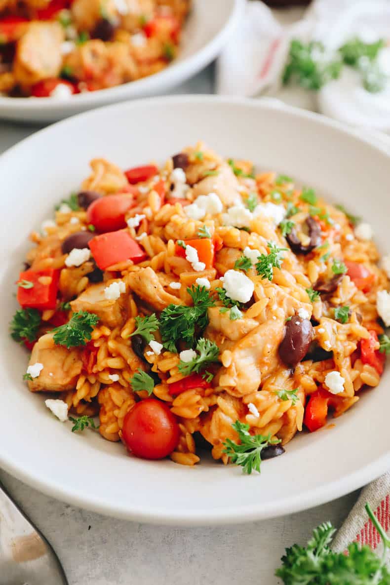 Looking for a simple and delicious weeknight dish that the whole family will love? This one-pot greek chicken and orzo is a full meal-in-one with minimal prep, cook time and dishes!