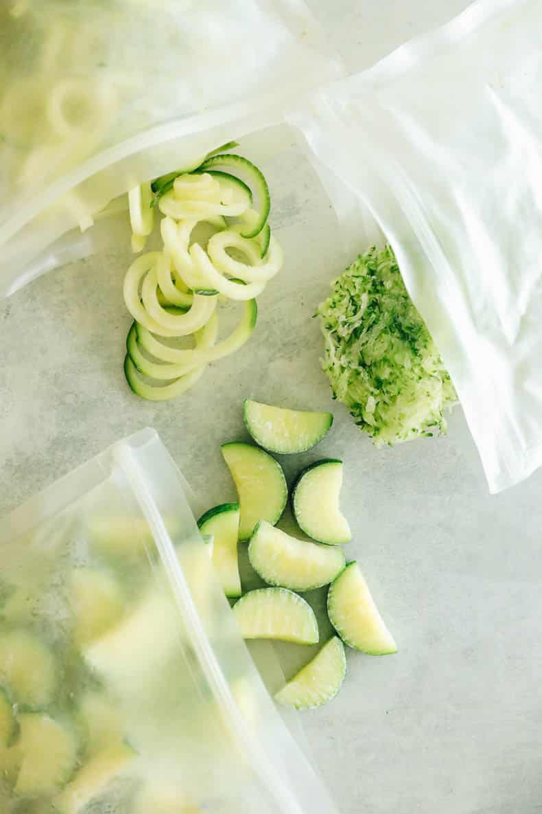 Can you freeze zucchini? The answer is YES! In fact zucchini freezes well whether it’s chopped, grated or spiralized. Perfect for adding to your favorite zucchini recipes.