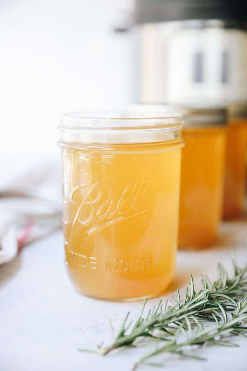 I love making bone broth in my Instant Pot because what usually takes all day (or night!) long in the slow cooker takes just 2-3 hours. Perfect for my impatient self. You can either pressure cook on high for 2 hours or low for 3 hours. This is the equivalent to 24 hours on the stove top.