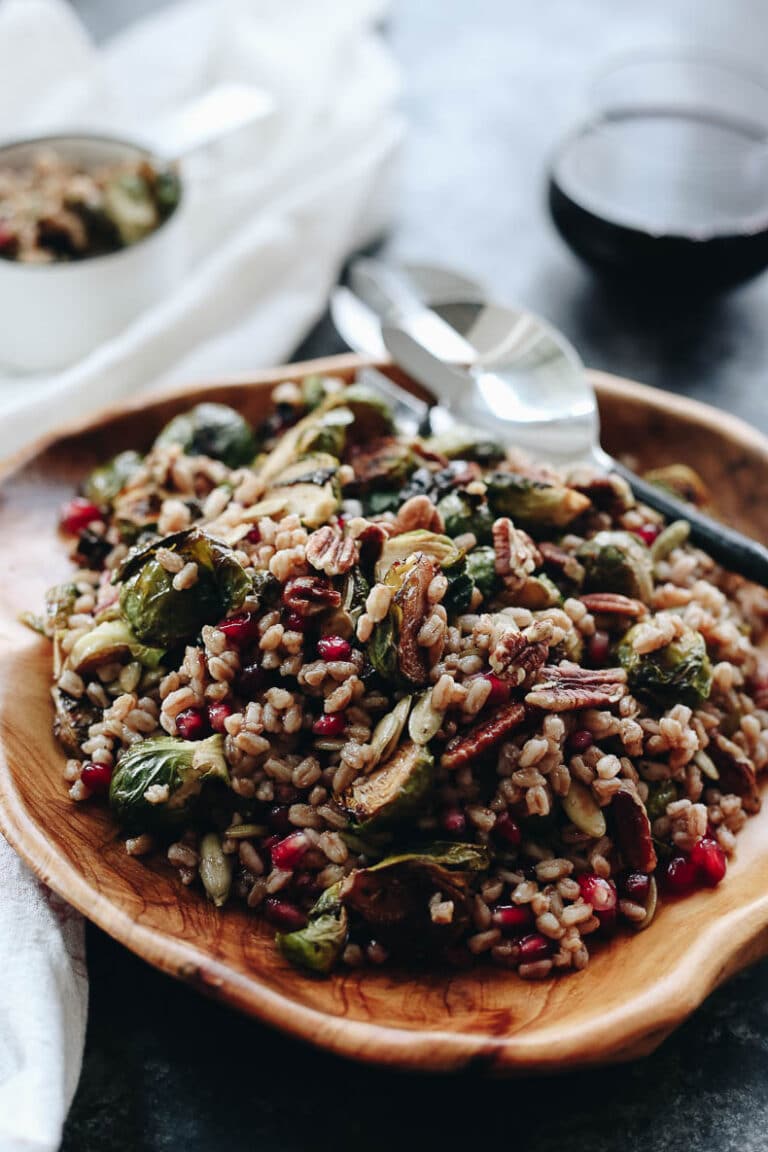 A healthy recipe for fall, this Roasted Brussels Sprouts Farro Salad makes the perfect weeknight side dish or main or holiday standout dish. Simple ingredients but full of natural flavors the whole family will enjoy.