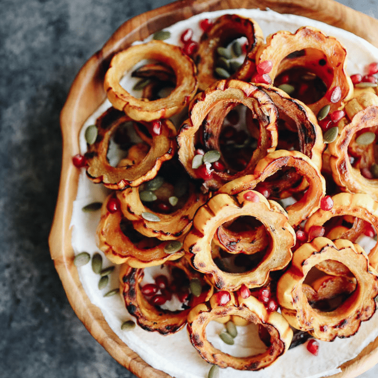 The ultimate fall salad is this maple roasted acorn squash salad tossed with a deliciously decadent pomegranate vinaigrette. The perfect way to get in your seasonal veggies!