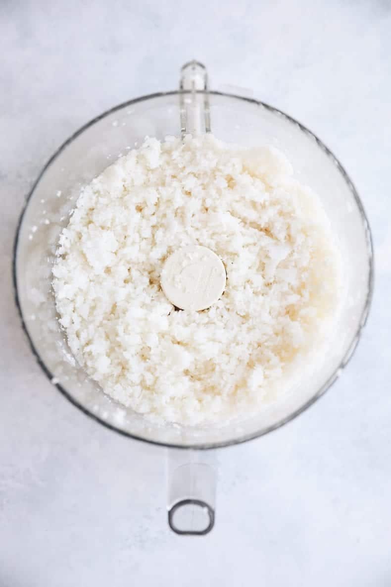 Note: many grocery stores actually sell pre-riced cauliflower so if you don’t have a food processor this will be your best option.