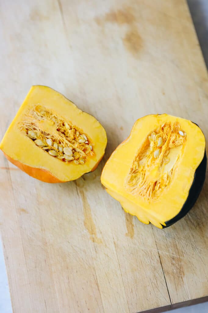 - 2 large acorn squash (around 6 cups chopped), peeled, seeded and chopped