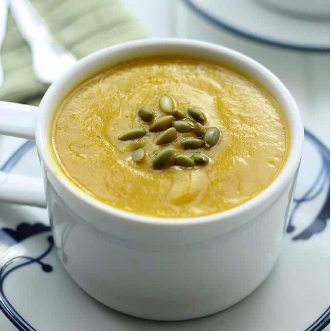 A sweet and zesty soup with the flavours of fall from butternut squash and sweet potato. This soup will keep