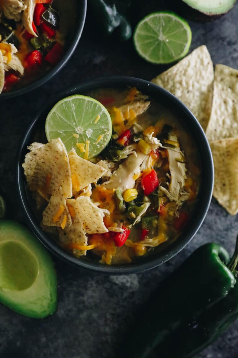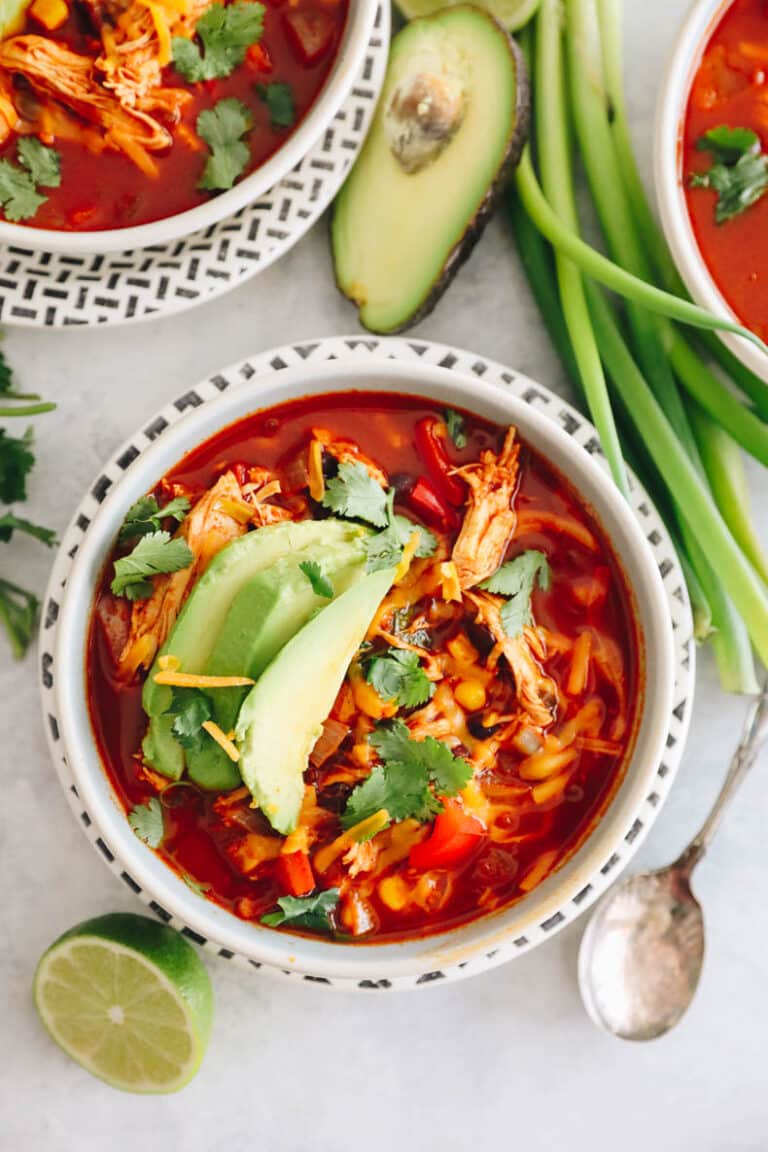 Cozy up with a big bowl of this chicken enchilada soup! It’s packed-full of flavor and nutritious ingredients and can be made in a big batch that the whole family will enjoy. This enchilada soup recipe can be made on the stove top or in the slow cooker or Instant Pot. There’s options for everybody!