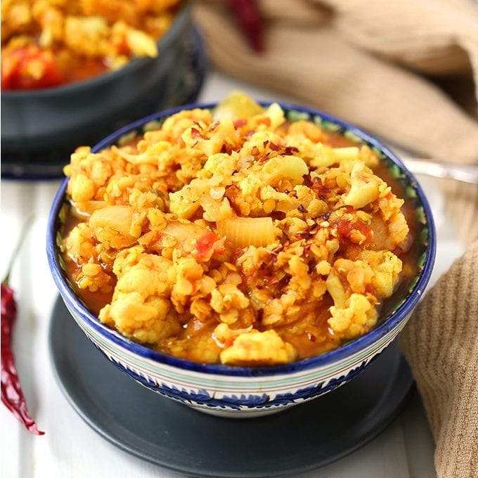 A healthy vegetarian recipe for Curried Cauliflower and Lentil Soup, this dish will quickly become a lunch staple. Just whip up a pot at the beginning of the week and have healthy meals for days!