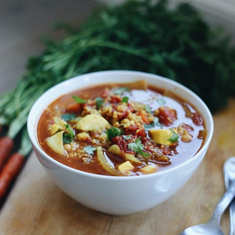 Souper Sunday returns with this Moroccan Chickpea and Couscous Soup! A one pot meal full of zesty and sweet moroccan spices, hearty couscous and a chickpea protein boost. Perfect for lazy winter day when you’re craving a flavorful bowl of soup.