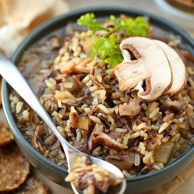 A healthy vegetarian soup recipe, this mushroom and wild rice soup is the perfect dish to keep on hand for cold winter nights! It’s hearty, filling and packed-full of flavor. Plus it requires just 7 ingredients!
