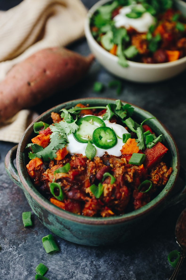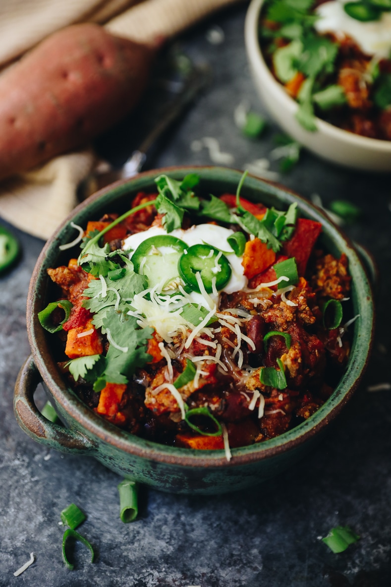 So when it comes to chili, I honestly eat this year round. I know thatโs not the case for most of you so I practiced some self-control and waited until an acceptable month to share this delicious turkey sweet potato chili recipe with you.
