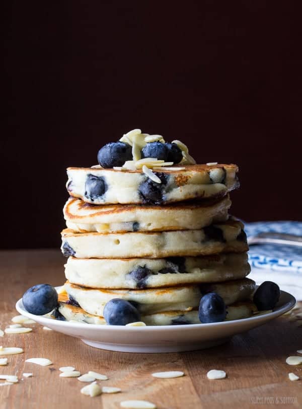 These almond blueberry pancakes from Sweet Peas and Saffron are extra fluffy thanks to greek yogurt, and make for a healthier pancake choice.