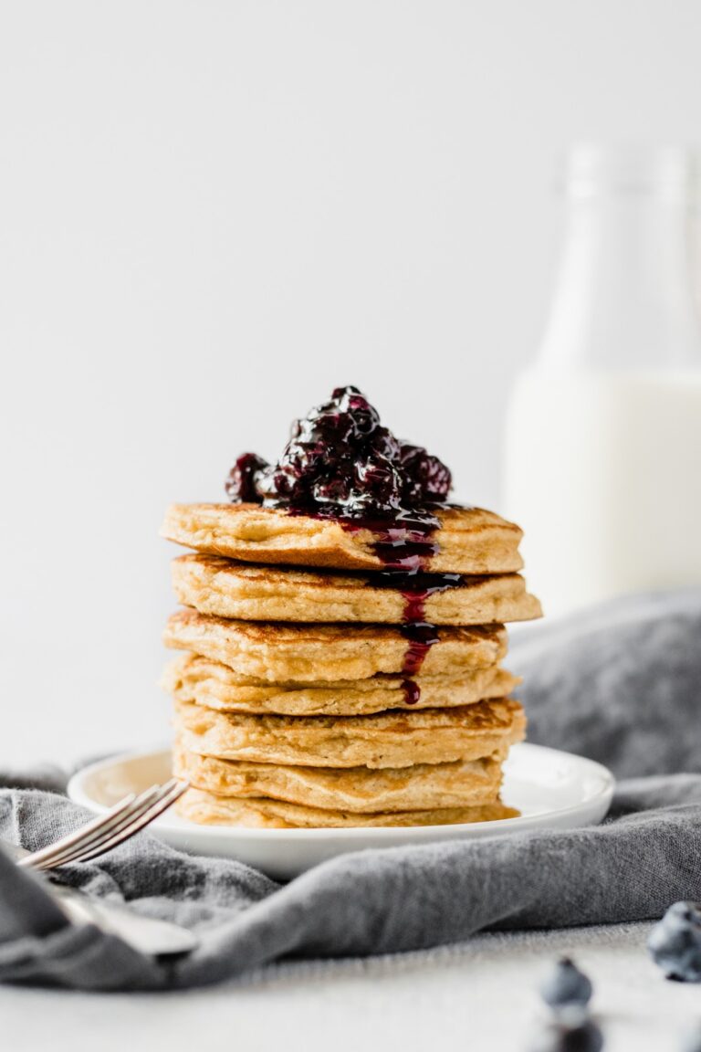 Have you ever wondered how to make whole wheat pancakes? This whole wheat pancake recipe is packed full of whole grains with dairy-free or dairy-full options for a healthier twist on traditional pancakes.