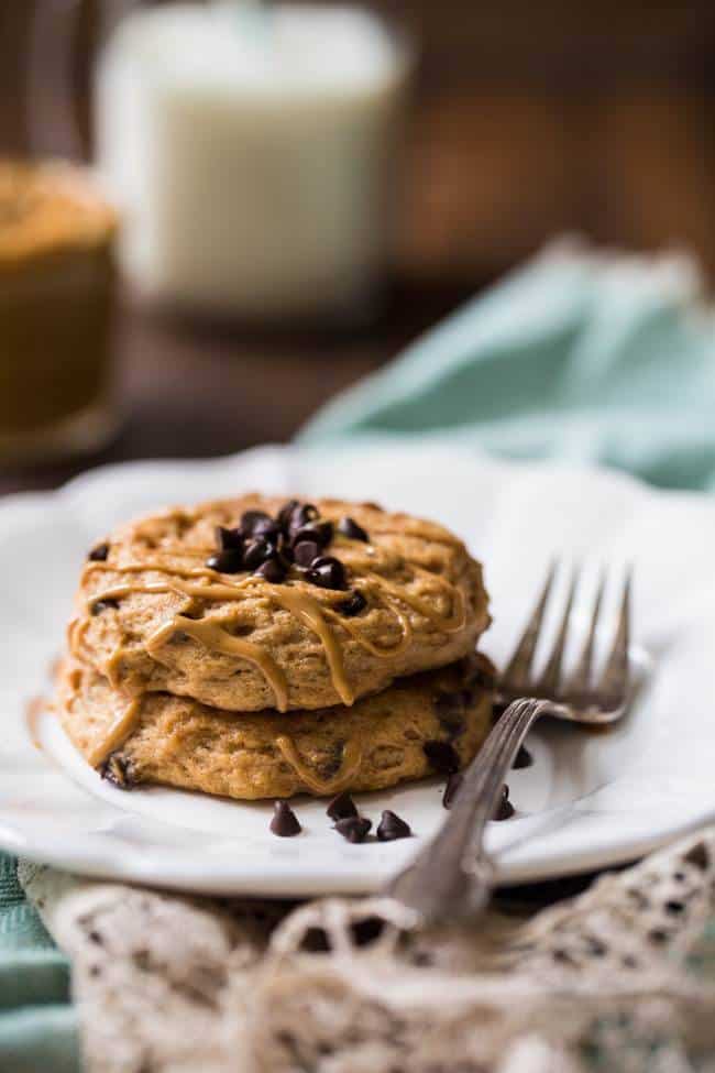 Whole Wheat Peanut Butter Chocolate Chip Pancakes