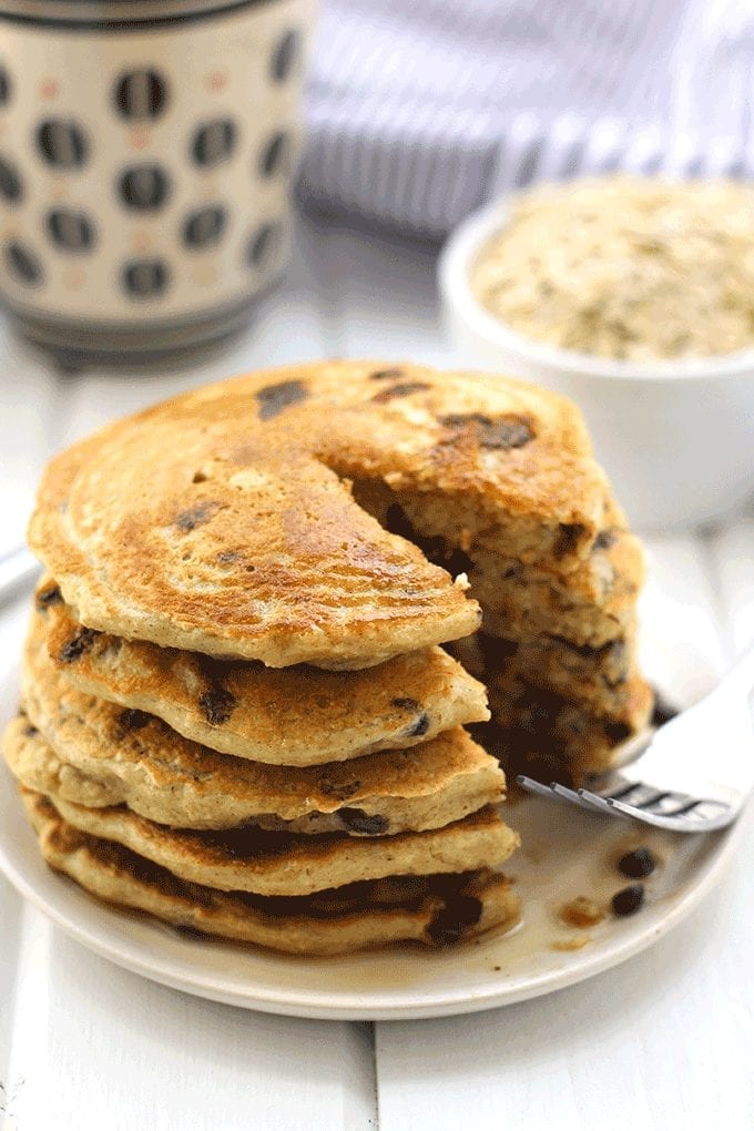 The Fluffiest Oatmeal Chocolate Chip Pancakes