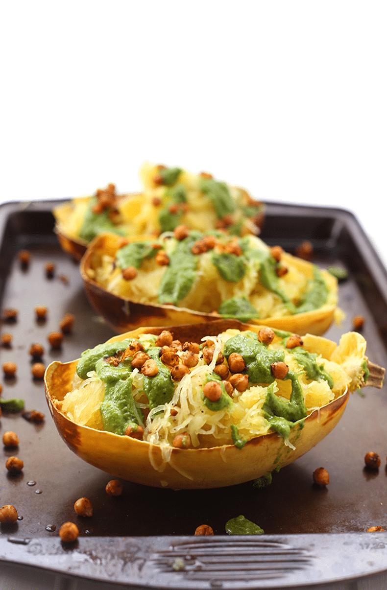 Okay, I am extra excited to try this recipe out ….. tomorrow! I am very opposed to eat anything out of cans but tonight I will prepare the chickpeas. There are quite a few different ways to cook spaghetti squash and I cut it in half, scoop out the seeds and roast. By waiting until tomorrow, I can mince up a ton of garlic, mix it in olive oil, slather it over the cut squash and let it “marinate” before roasting. Thank you SO much for this recipe!!!