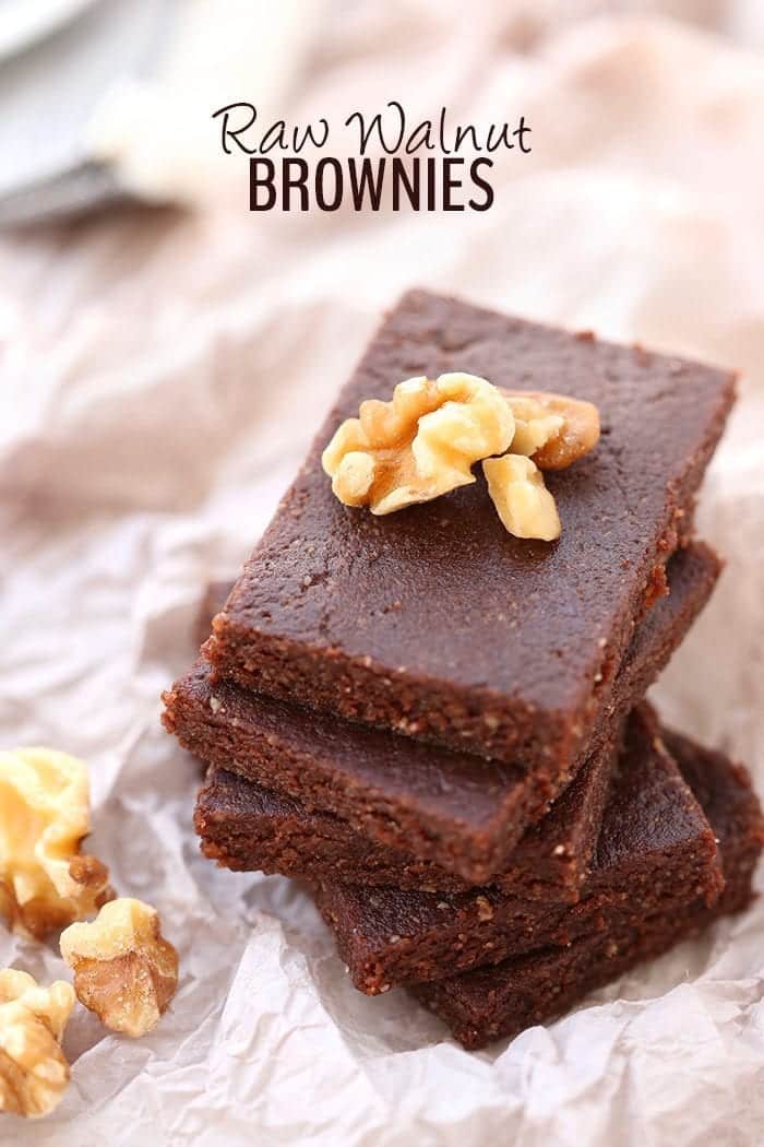 4 ingredients is all you need to make these Raw Walnut Brownies. They’re gluten-free, vegan, paleo and refined-sugar-free but still taste incredible! Plus they take just 5 minutes to whip up.