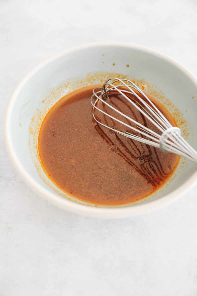 - In a small bowl combine tamari, chili paste and rice vinegar. Set aside.