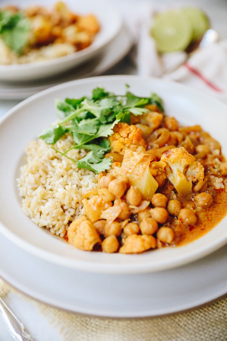 An easy one-pot recipe for veggie massaman curry made with cauliflower and chickpeas and packed full of flavor. A delicious weeknight dinner or weekend feast the whole family will enjoy.