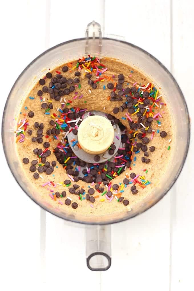 Ok it’s SO time for me to start baking with chickpeas!!!! I’ve seen it multiple places but haven’t been convinced to try it, until now. Oh Davida, you know how to make a girl happy (aka adding sprinkles).