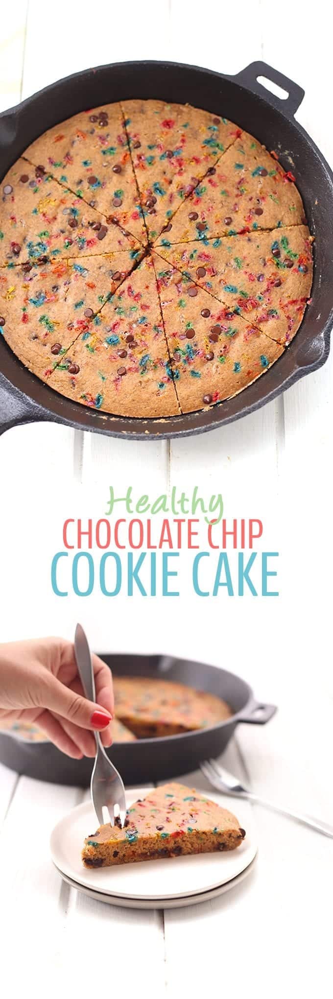 A recipe for Healthy Chocolate Chip Cookie Cake made with a secret ingredient! High in protein, and without any refined sugar, your celebrations will be the perfect combo of decadent and healthy!