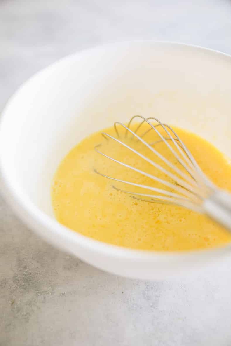 - In a separate bowl whisk eggs and milk. Add in sea salt.