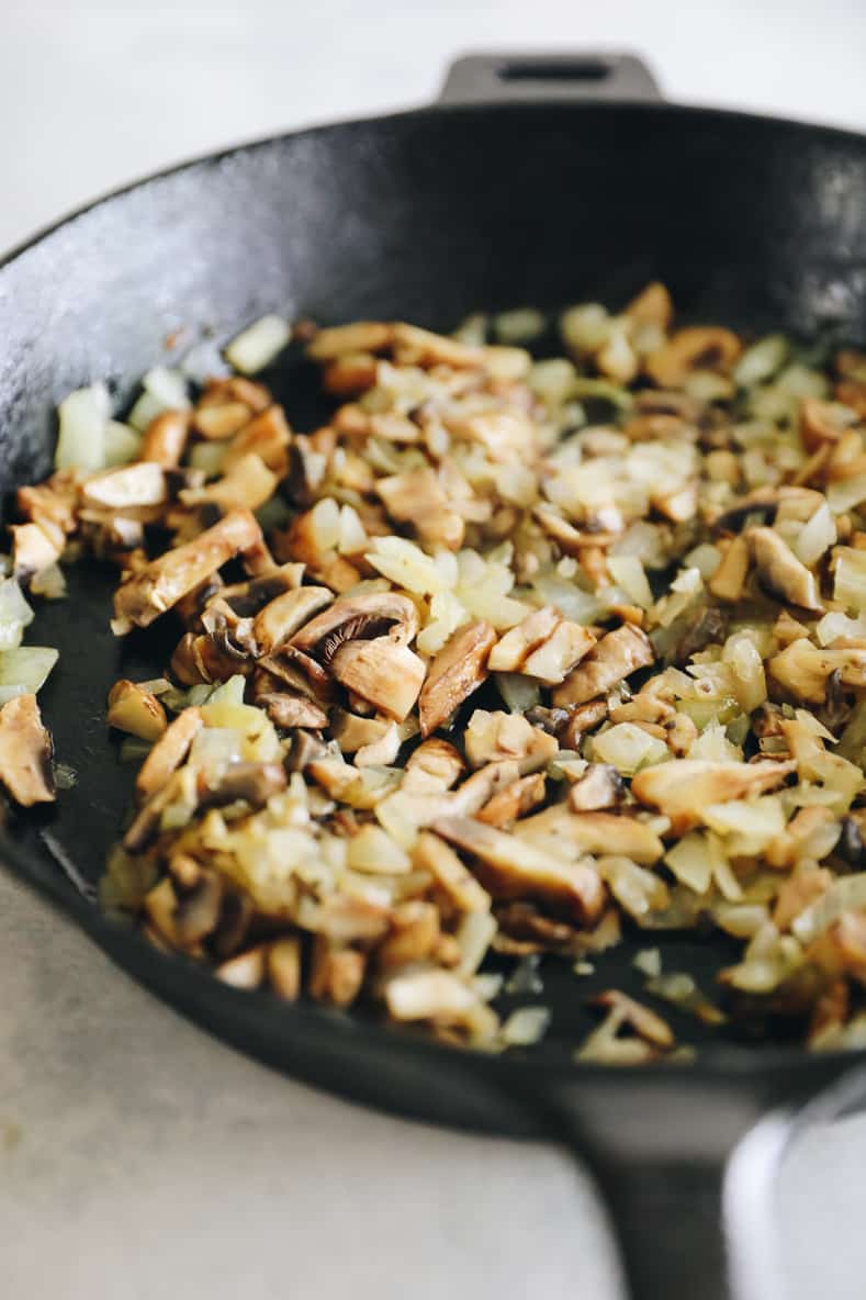 - Add in mushrooms and saute for another 5 minutes or until mushrooms are cooked through.