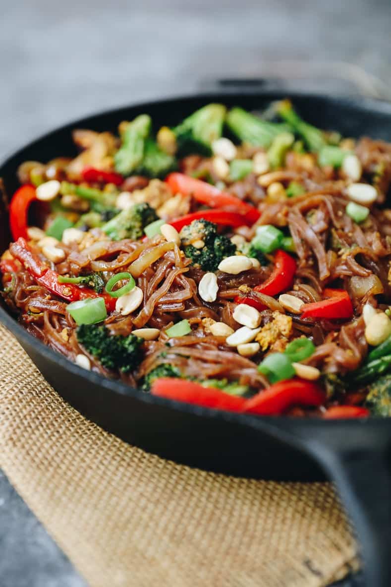 The sauce mixture was off and needed a little extra oomph and it wasn’t until a picked up a jar of Tamarind puree that I finally figured that out! I now keep a jar of it on hand so I can make this veggie pad thai recipe whenever I please. Simply put: this veggie pad thai recipe is THE BEST. It comes together quickly (hello 20 minutes!) and you can truly use whatever vegetables you have on hand.