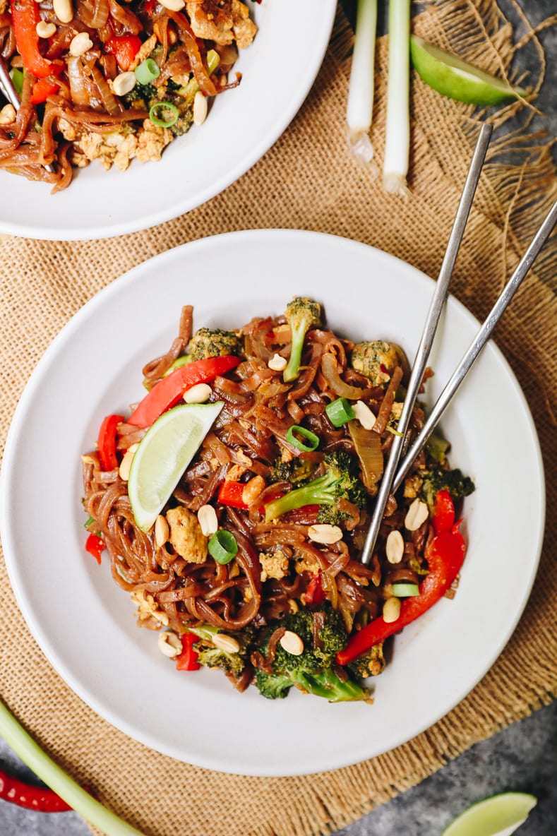 I feel like I’ve been working on this veggie pad thai recipe for years! I used to have a shrimp pad thai recipe on the blog that has since been lost into the archives but if I’m being honest, I always felt like it was missing something. It lacked that authentic classic pad thai flavor that you get in Thai restaurants.